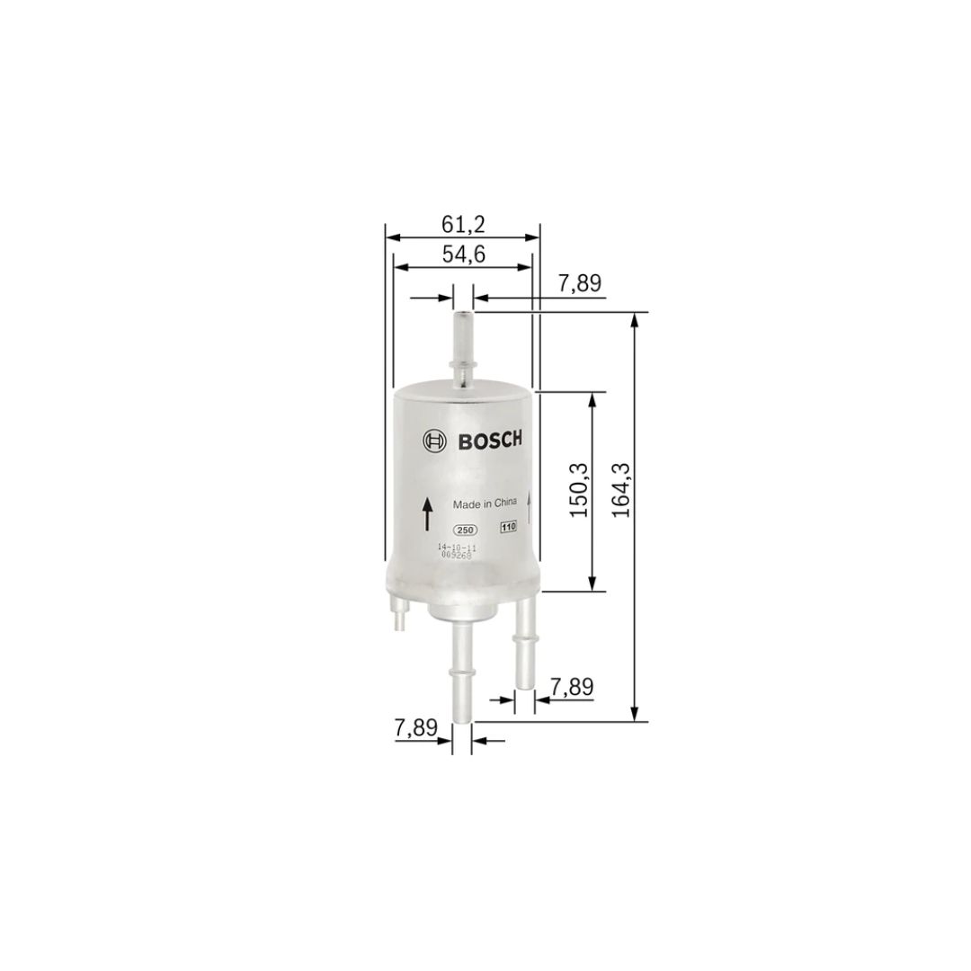 BOSCH Fuel Filter Skoda Octavia A5 1600 CCHeight (unpacked)= 164.5 mmDiameter (unpacked)= 55.5 mmOuter diameter= 62 mmFuel type (Petrol)Hose connection 1 outlet diameter= 8 mmHose connection 1 inlet diameter= 8 mm