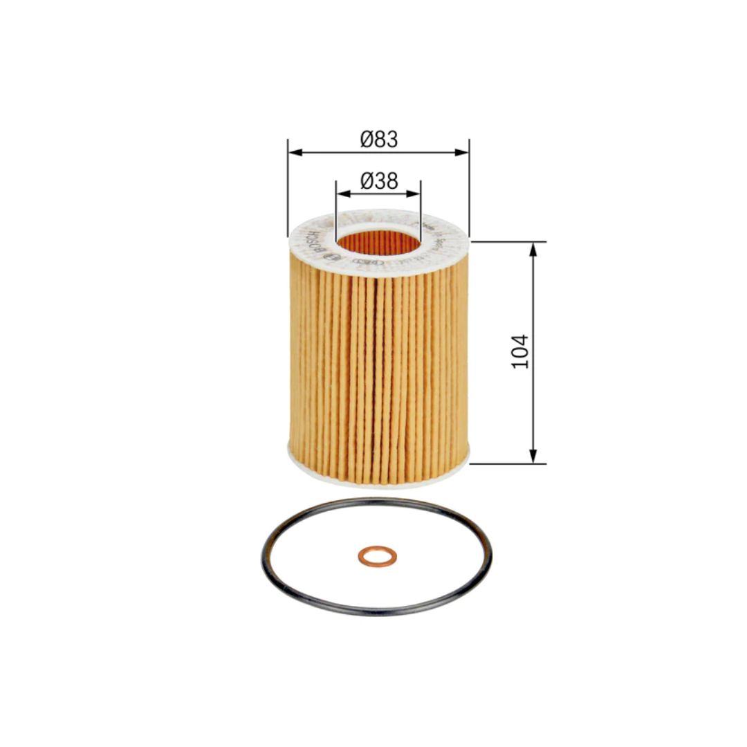BOSCH Oil Filter Element BMW E36 , E39 , E46 , E60Outer Diamter 1 (mm) = 83Height (mm) = 104Internal Diameter 1 (mm) = 38
