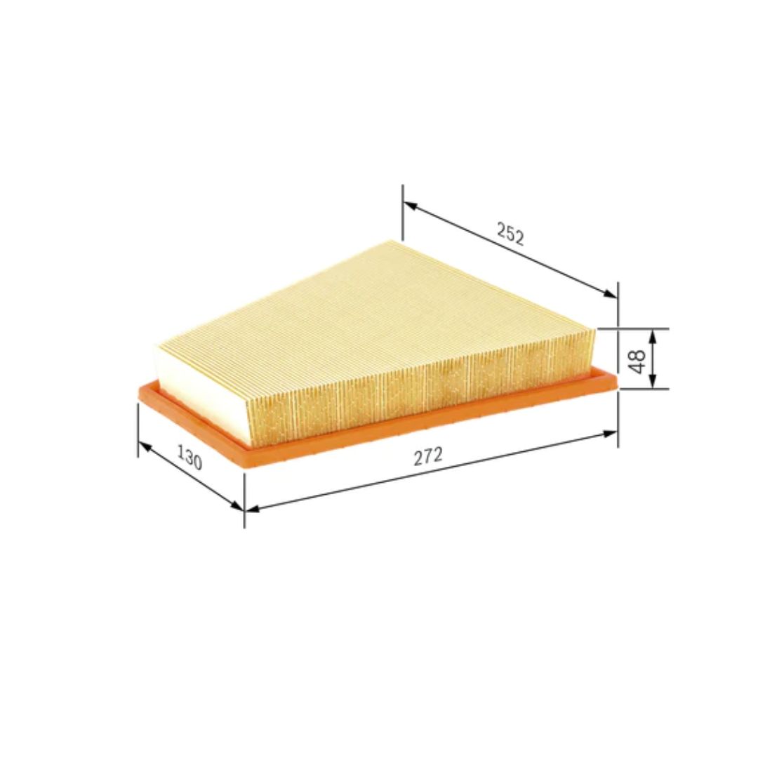 BOSCH Air Filter BMW F10Length (mm) = 272Width (mm) = 252Height (mm) = 48