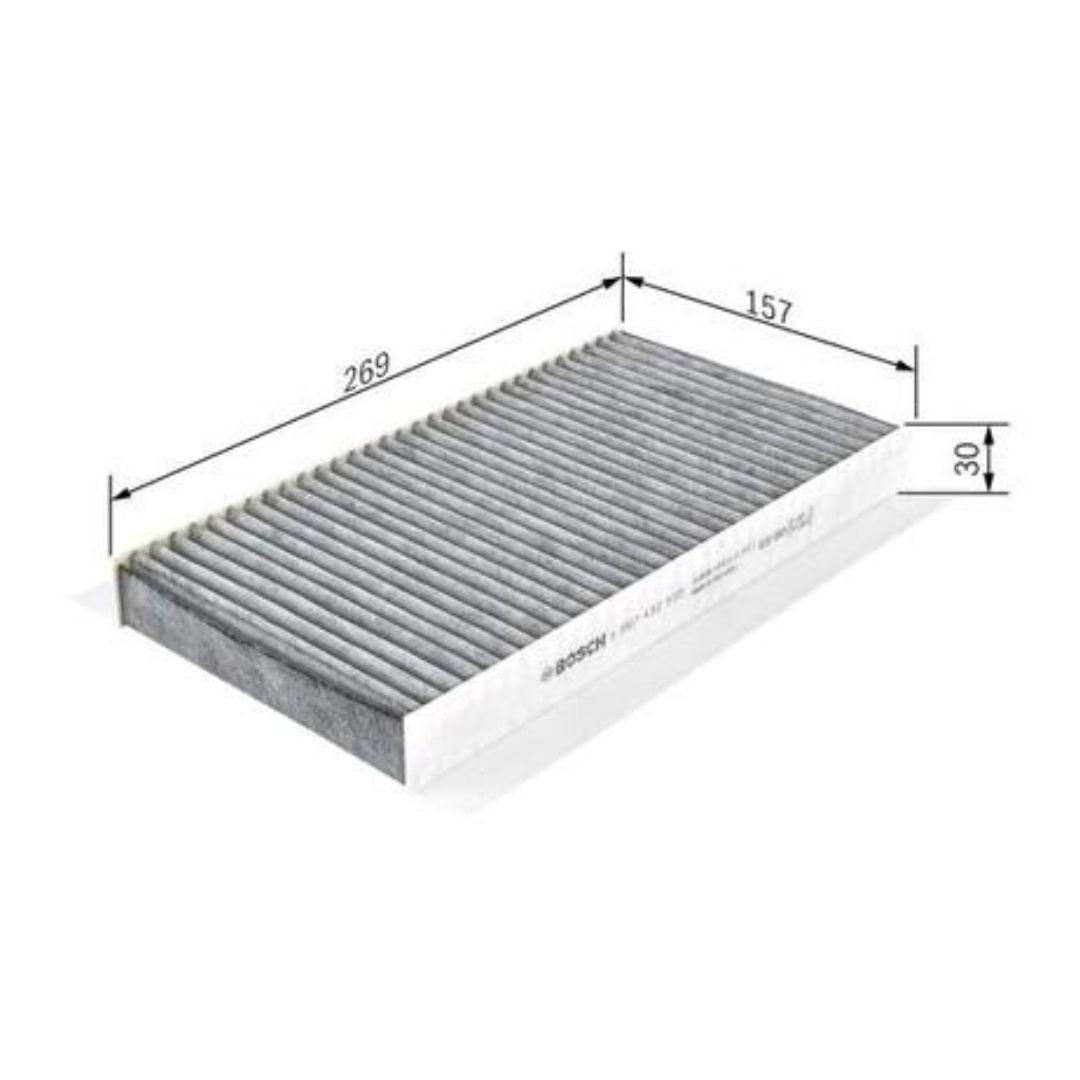 BOSCH Activated Carbon Cabin Filter Land Rover Discovery 3 & 4Length (mm) = 269Width (mm) = 157Height (mm) = 30