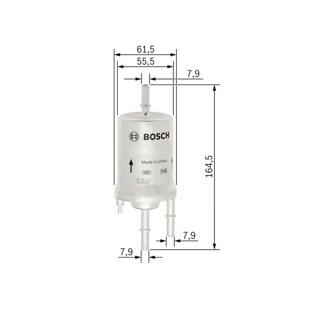 BOSCH Fuel Filter Skoda Octavia A5 1400 TSIHeight (unpacked)= 164.3 mmDiameter (unpacked)= 61.2 mmHose connection 1 outlet diameter= 8 mmHose connection 1 inlet diameter= 8 mm
