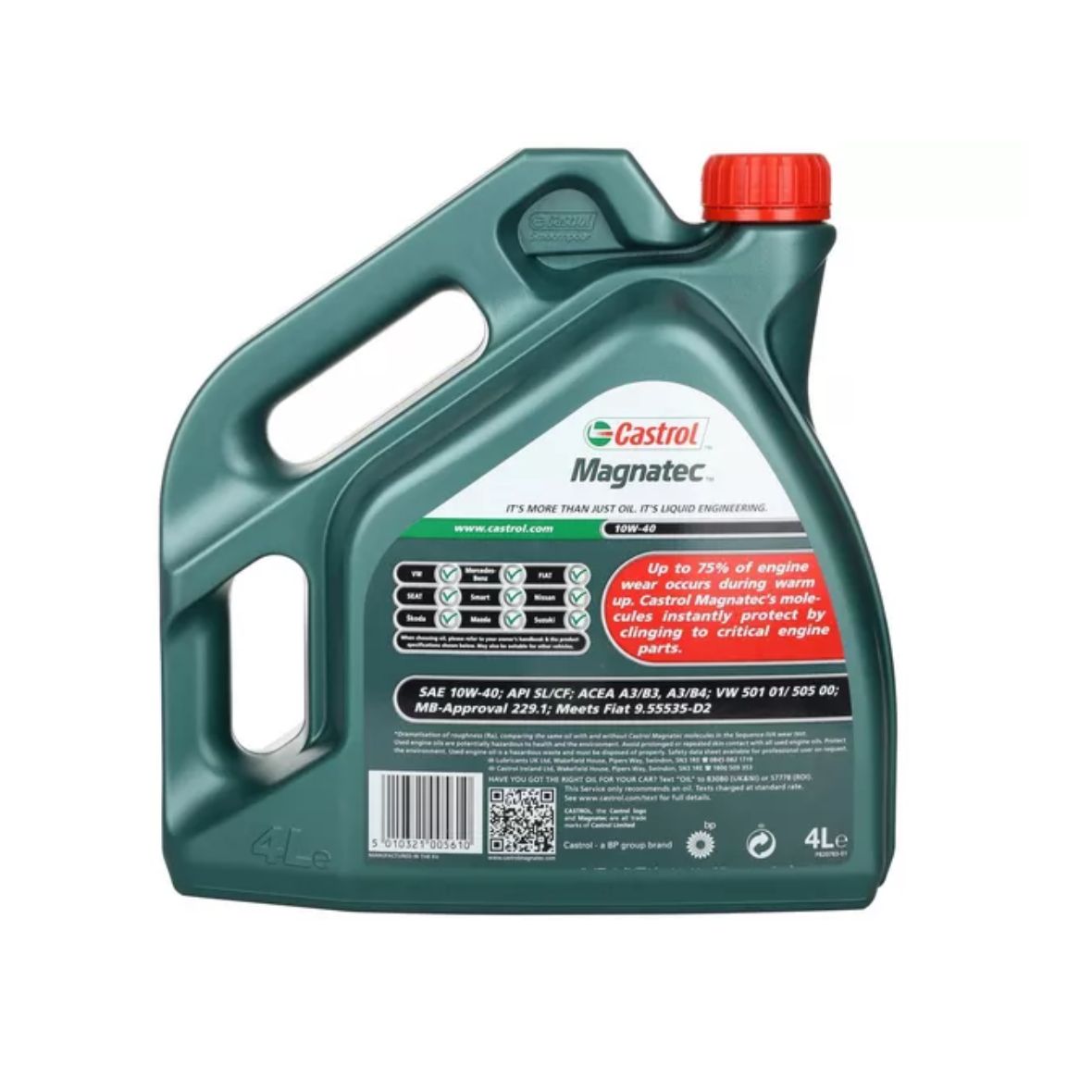 ACEA / API / FIAT / Mercedes / Renault / VW مناسبة ل قائمة مواصفات ACEA A3 / B3 ، A3 / B4 ، API SN ، يجتمع مع \ Fiat 9.55535-D2 ، MB-Approval 226.5 ، Renault RN 0700 / RN 0710 ، VW 501 01/505 00 كاسترول ماجناتيك بتقنية DUALOCK يشكل فيلمًا ذاتي الإصلاح يلتصق بالأسطح المعدنية ويحمي محرك سيارتك في ظروف الازدحام الشديد يوفر حماية مستمرة لجميع ظروف القيادة وأنماطها ودرجات الحرارة يوفر أداءً رائعًا في ظل ظروف بدء التشغيل شديدة البرودة العنصر ليس له تاريخ انتهاء الصلاحية ، ولكن التاريخ المذكور على المنتج هو تاريخ الشركة المصنعة كاسترول ماجناتيك: حماية بدون توقف من كل بداية ازداد الازدحام المروري بشكل كبير خلال العقد الماضي. هذا أمر مزعج ، ولكنه أسوأ من ذلك ، فهو يضر بمحركك ببطء - بشكل دائم. للاستجابة للبيئات Castrol MAGNATEC في المناطق الحضرية بشكل متزايد ، قمنا بتطوير تقنية DUALOCK \ براءة اختراع. تقنية MAGNATEC DUALOCK Castrol الفريدة من نوعها إنها الأولى في العالم. تتشبث الجزيئات بأجزاء المحرك المهمة وتغلق معًا لحماية المحرك من التلف ارتداء الاحماء وارتداء بدء التشغيل. هذا يشكل مجال قوة وقائية قوية تقلل من تآكل الإحماء والتآكل المتقطع ، كل جانب